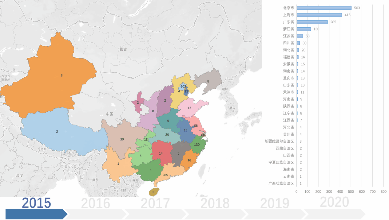 图1 我国2015-2020年金融科技公司开展及分布情况