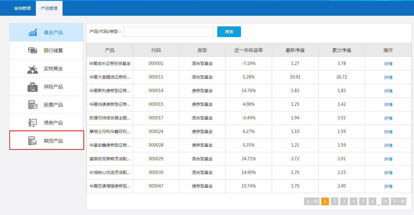 涵盖股票、债券、基金产品、实物黄金和期货数据,保持每日更新,便于用户对于理财产品的学习及趋势的把握。