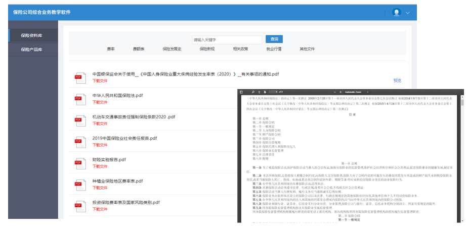 Ezpay保险综合业务教学系统顺利获得模拟从投保到理赔的全流程保单业务操作,让学生体验商业保险公司中各大工作岗位的操作规范、流程及差异,全面分析和应用寿险、财险和车险中各类险种产品的投保和理赔规则,进而达到学校培养保险应用型人才的目的。