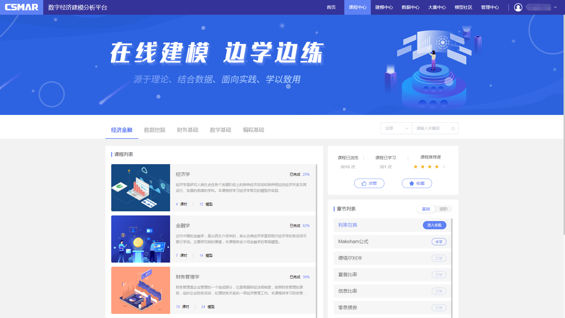 支持丰富通用代码库(73个内嵌算法),附有Python、R语言经典新手入门实操课程,帮助师生边学边练,轻松上手常用数据分析和模型应用